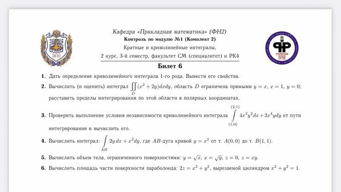 Для студентов МГТУ им. Н.Э.Баумана по предмету Кратные интегралы и рядыКратные и криволинейные интегралы РК №1Кратные и криволинейные интегралы РК №1