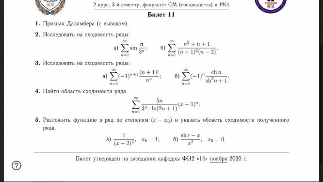 Ответы к контрольной работе 11: Ряды РК №2 вариант 11