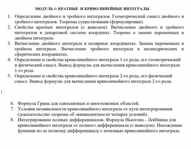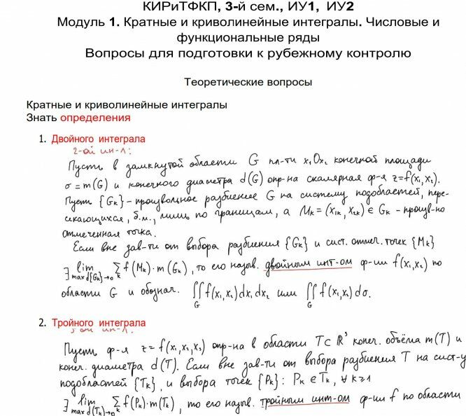 Ответы к контрольной работе 1, РК1: Теория РК №1 по кратным интегралам