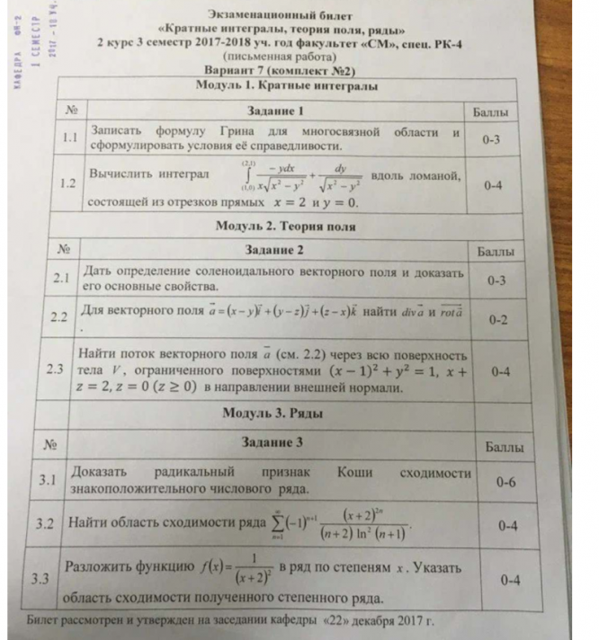 Для студентов МГТУ им. Н.Э.Баумана по предмету Кратные интегралы и рядыЭкзаменационный билеты по Кратным интеграламЭкзаменационный билеты по Кратным интегралам
