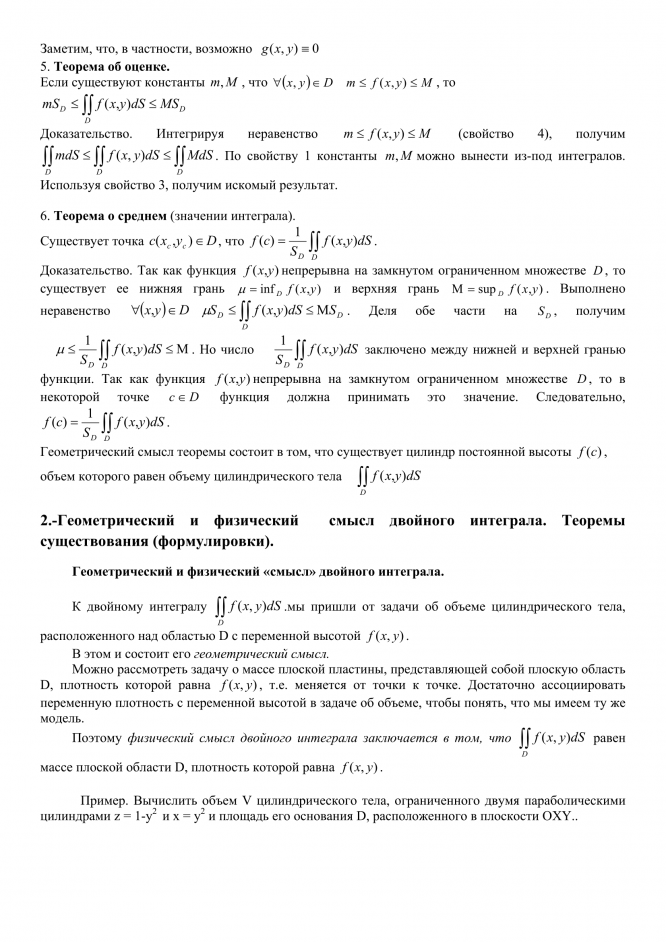 Ответы к экзамену: Экзаменационный билеты по Кратным интегралам