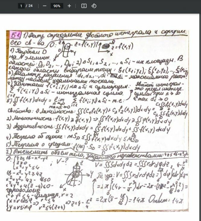 Для студентов МГТУ им. Н.Э.Баумана по предмету Кратные интегралы и рядыРешения многих билетов к экзамену 2023г (Теория + Задач)Решения многих билетов к экзамену 2023г (Теория + Задач)