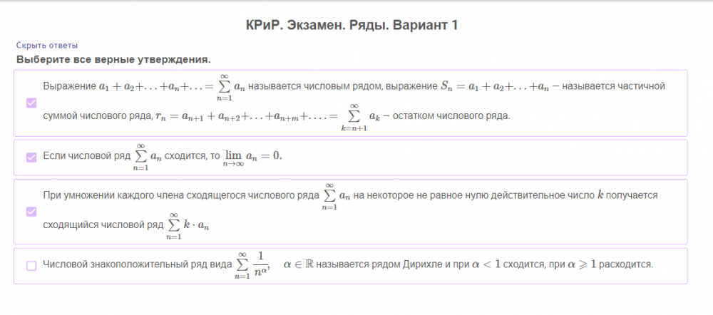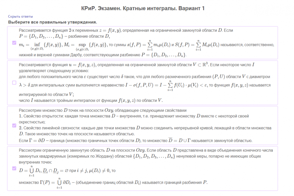 Для студентов МГТУ им. Н.Э.Баумана по предмету Кратные интегралы и рядыТестыТесты