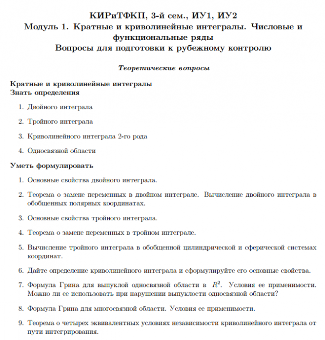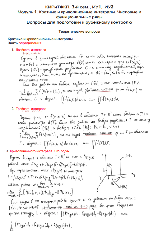 Для студентов МГТУ им. Н.Э.Баумана по предмету Кратные интегралы и рядыОтветы к РК1Ответы к РК1