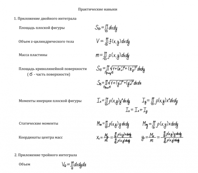 Ответы к экзамену: Основные формулы и теория для экзамена по кратным интегралам, теории поля, рядам (4 семестр)