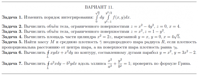 ДЗ 1: Кратные и криволинейные интегралы вариант 11