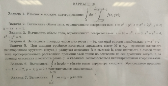 ДЗ 1: Кратные и криволинейные интегралы вариант 18
