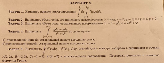 ДЗ 1: Кратные и криволинейные интегралы вариант 8