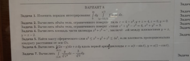 ДЗ 1: Кратные и криволинейные интегралы вариант 8