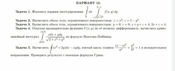 ДЗ 1: Кратные и криволинейные интегралы вариант 12