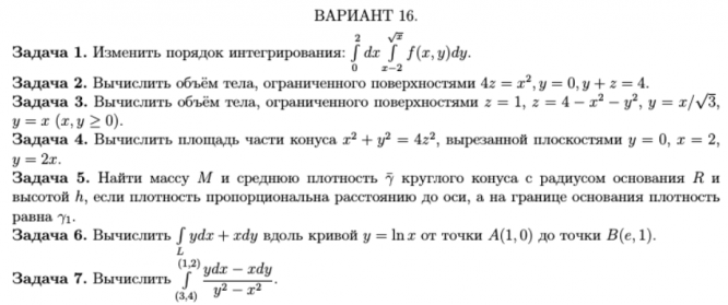 ДЗ 1: Кратные и криволинейные интегралы вариант 16