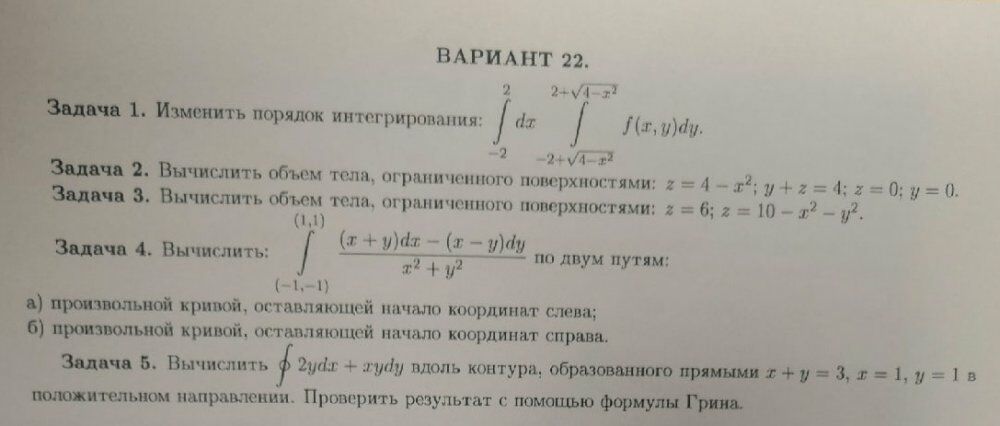 ДЗ 1: Кратные и криволинейные интегралы вариант 22
