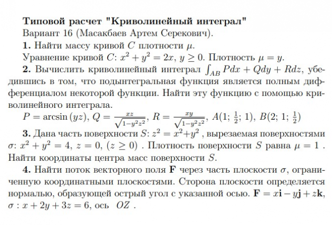 ДЗ 2: Криволинейные и поверхностные интегралы вариант 16