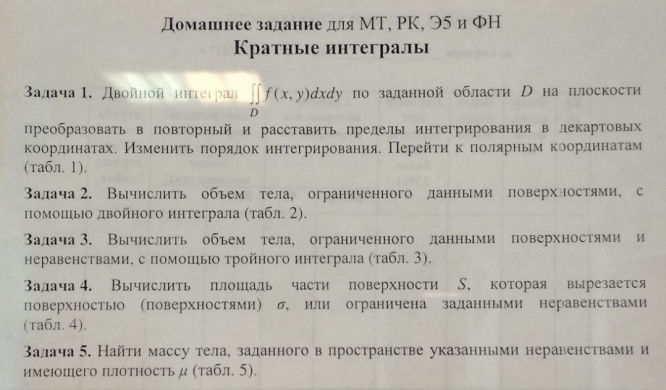 Типовой расчет по математическому анализу №1, 5 задач: "Кратные интегралы", зачтено