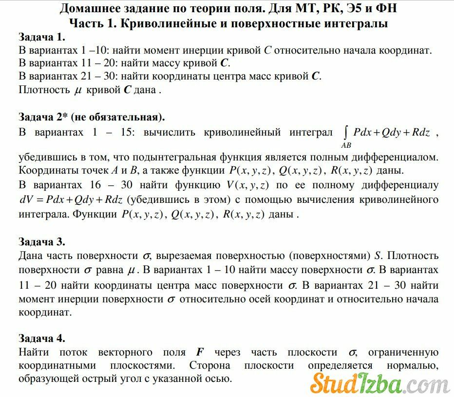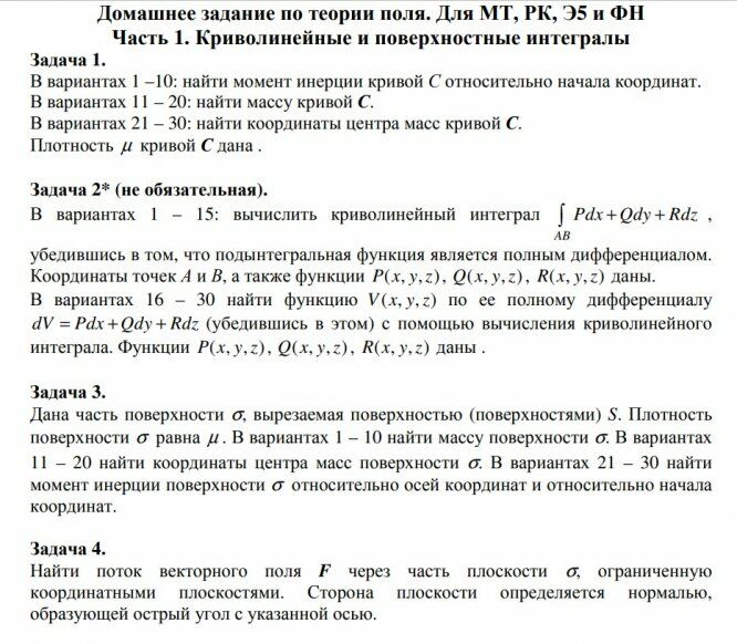 ДЗ 2: Криволинейные и поверхностные интегралы вариант 3