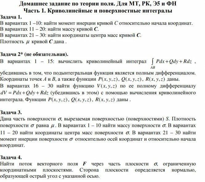 ДЗ 2: Криволинейные и поверхностные интегралы вариант 10