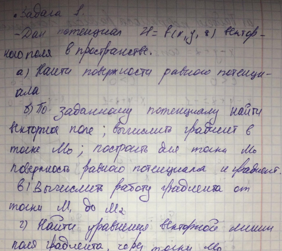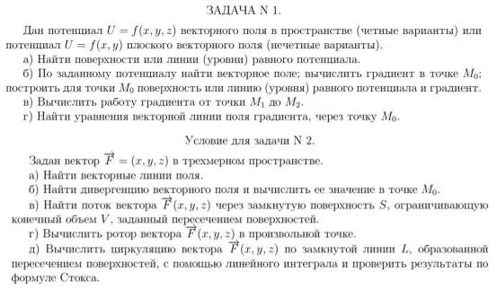 Типовой расчет по математическому анализу №2, 2 задачи: "Теория поля", зачтено