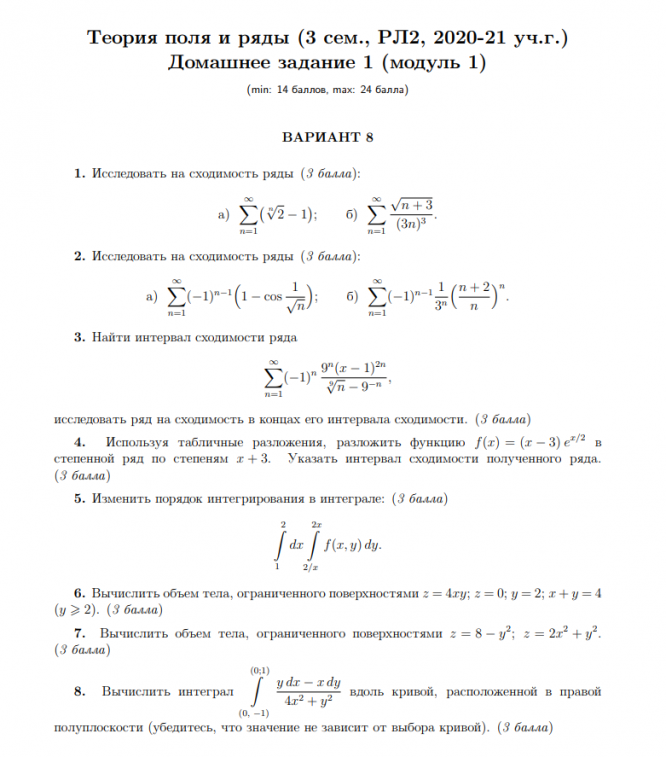 ДЗ 3: Ряды вариант 8