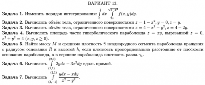 Вариант 13 - Дз-1 "Кратные и криволинейные интегралы"