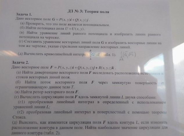 Типовой расчет по математическому анализу №3, 2 задачи: "Теория поля", зачтено