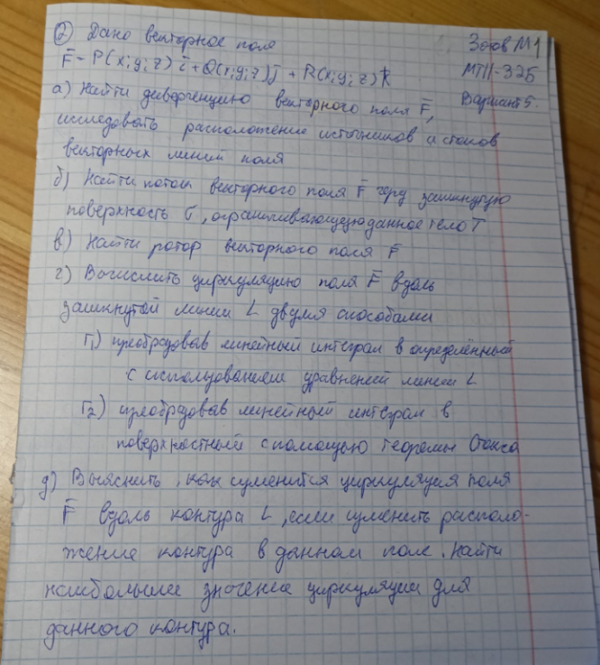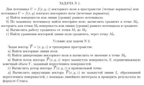 Типовой расчет по математическому анализу №2, 2 задачи: "Теория поля", зачтено