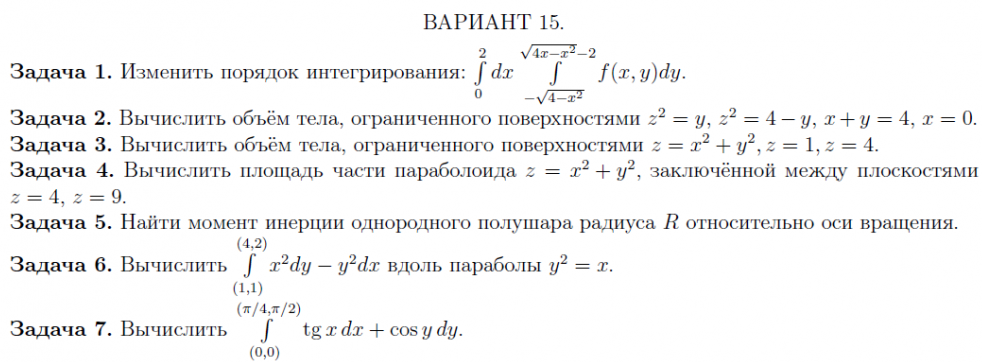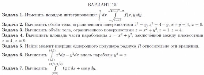 Вариант 15 - Дз-1 "Кратные и криволинейные интегралы"