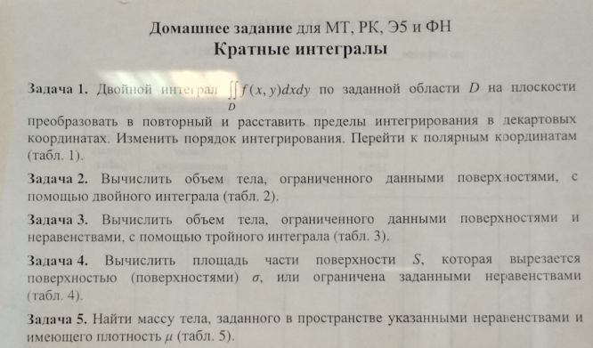 Типовой расчет по математическому анализу №1, 5 задач: "Кратные интегралы", зачтено