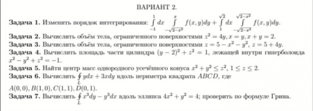 ДЗ 1: Кратные и криволинейные интегралы вариант 2