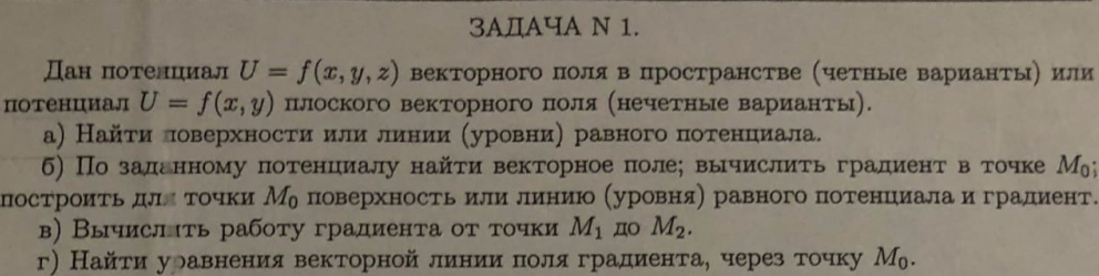 Типовой расчет по математическому анализу №2, 2 задачи: "Теория поля", зачтено
