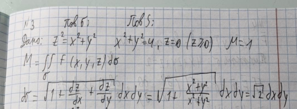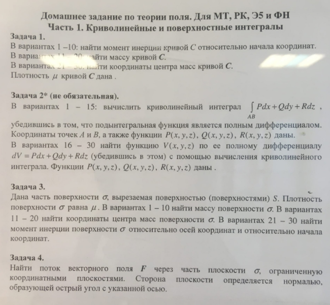 Типовой расчет по математическому анализу №2, 4 задачи: "Криволинейные и поверхностные интегралы", зачтено