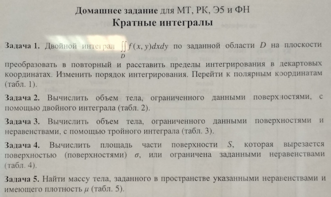 Типовой расчет по математическому анализу №1, 5 задач: "Кратные интегралы", зачтено
