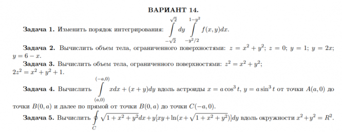 ДЗ 1: Кратные и криволинейные интегралы вариант 14