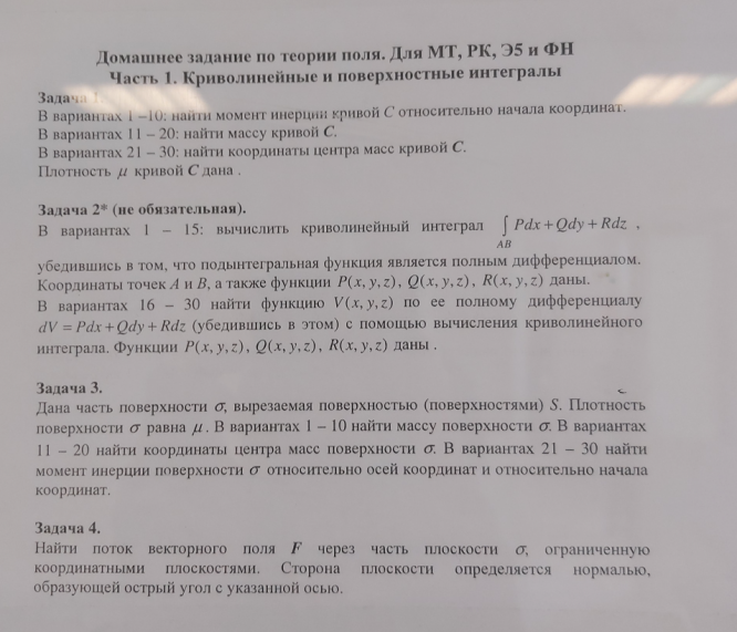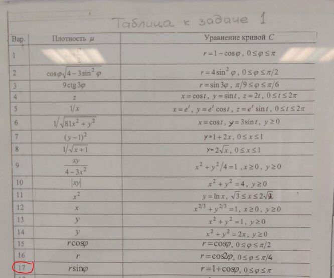 ДЗ 2: Криволинейные и поверхностные интегралы вариант 17
