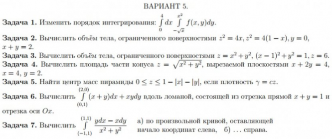 Вариант 5 - Дз-1 "Кратные и криволинейные интегралы"
