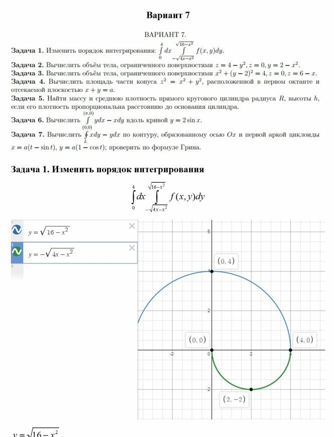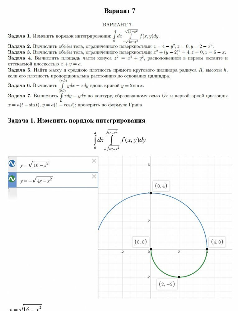 ДЗ 1: Кратные и криволинейные интегралы вариант 7