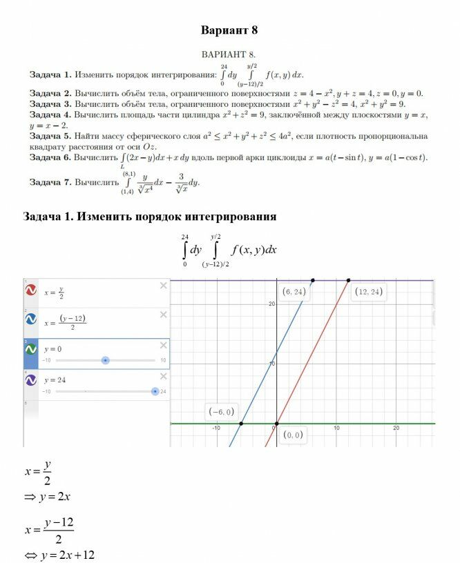 ДЗ 1: Кратные и криволинейные интегралы вариант 8
