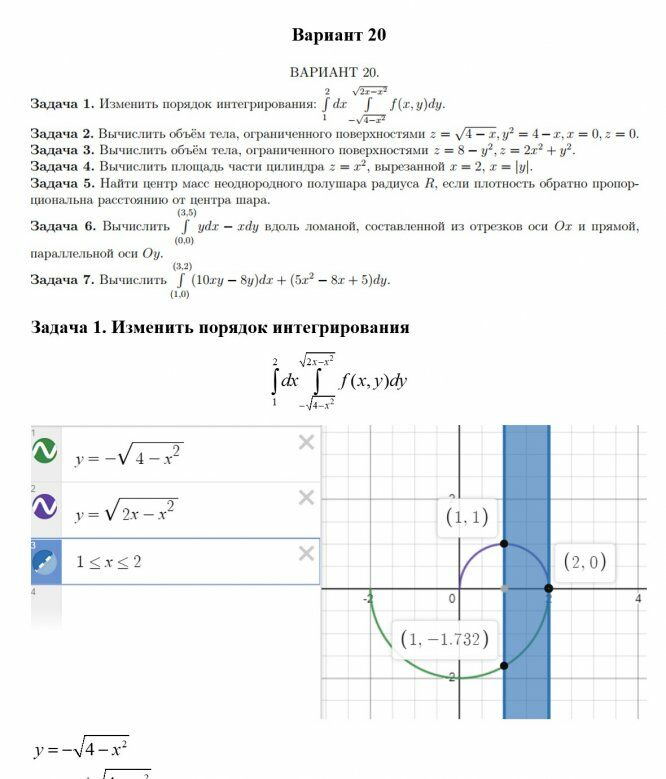 ДЗ 1: Кратные и криволинейные интегралы вариант 20