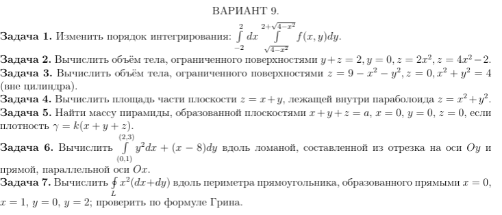 ДЗ 1: Кратные и криволинейные интегралы вариант 9