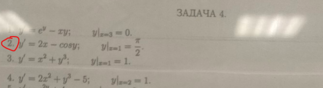 Задача 4. Найти в виде ряда Тейлора частное решение дифференциального уравнения при указанных начальных условиях (выписать четыре -пять членов разложения)