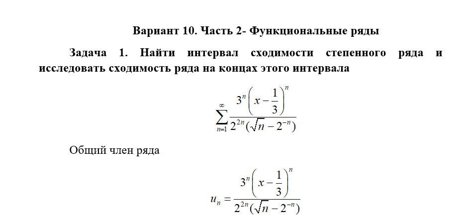 Задач 1. Найти интервал сходимости степенного ряда и исследовать сходимость ряда на концах этого интервала