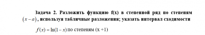 Задача 2. Разложить функцию f(x) в степенной ряд по степеням, используя табличные разложеня; указать интервал сходимости