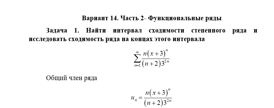 Задач 1. Найти интервал сходимости степенного ряда и исследовать сходимость ряда на концах этого интервала