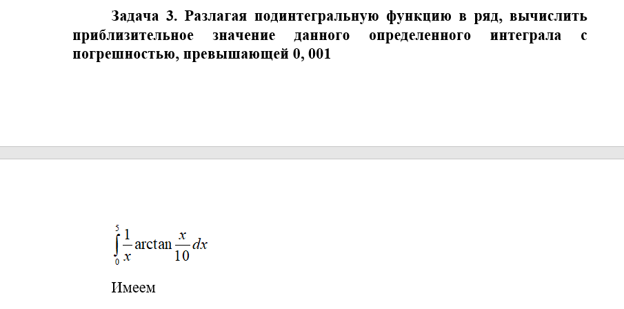 Задача 3. Разлагая подинтегральную функцию в ряд, вычислить приблизительное значение данного определенного интеграла с погрешностью, превышающей 0, 001