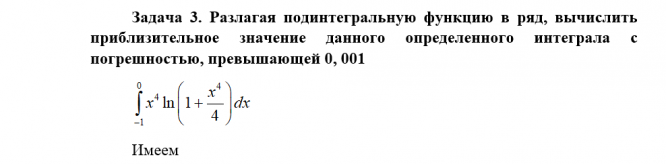 Задача 3. Разлагая подинтегральную функцию в ряд, вычислить приблизительное значение данного определенного интеграла с погрешностью, превышающей 0, 001