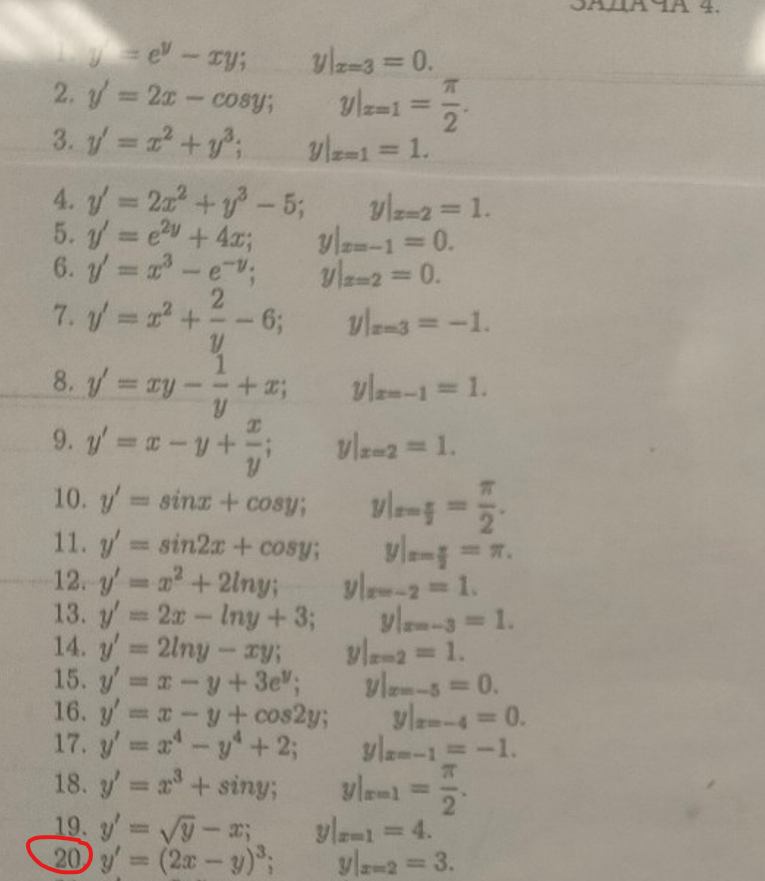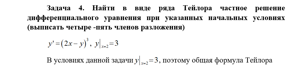 Задача 4. Найти в виде ряда Тейлора частное решение дифференциального уравнения при указанных начальных условиях (выписать четыре -пять членов разложения)