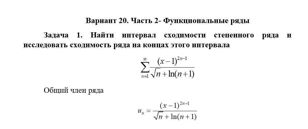 Задач 1. Найти интервал сходимости степенного ряда и исследовать сходимость ряда на концах этого интервала