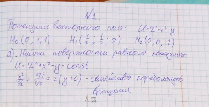 Типовой расчет по математическому анализу №2, 2 задачи: "Теория поля", зачтено