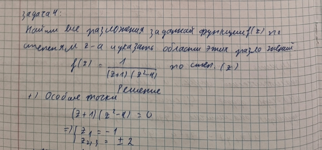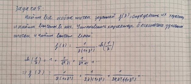 Задача 5: Найти все особые точки заданной функци , определить их характер и найти вычеты в них. Установить характер бесконечно удаленной точки и найти вычет в ней.