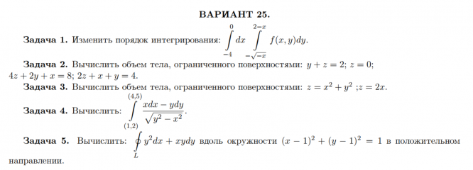 ДЗ 1: Кратные интегралы, Ряды, Теория функций комплексного переменного вариант 25