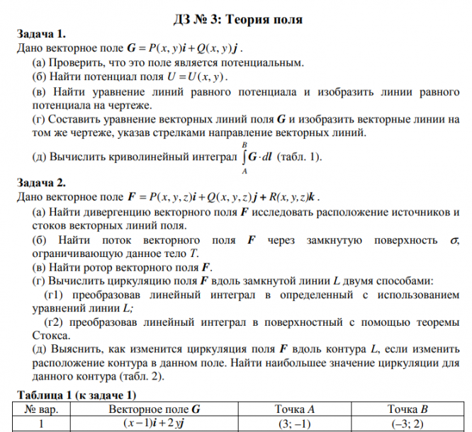 Вариант 1 - ДЗ №3 - Теория поля - МТ,РК,ИБМ,ЮР,Э5,ФН1